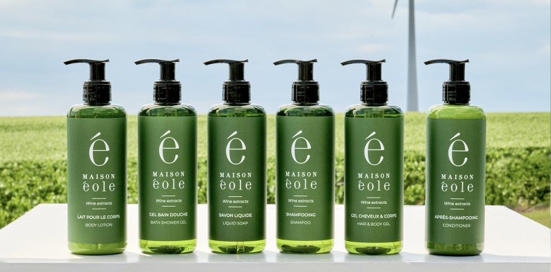 Maison Eole belichaamt Belgische trots: een welkomstverzorgingslijn geïnspireerd door de wijngaarden van Domaine du Chant d’Eole, die elegantie, effectiviteit en respect voor het leven verenigt. De zachte texturen en het sobere, verfijnde design bieden een complete zintuiglijke ervaring, versterkt door het parfum Volupté met tonen van vijg, vijgenhout en amber. Verrijkt met Wine Extract³, een exclusief actief ingrediënt bekend om zijn hydraterende en beschermende eigenschappen, verzorgt de lijn de huid terwijl het haar natuurlijke evenwicht behoudt. Als onderdeel van het Care About Earth-programma integreert het gerecyclede materialen, veganistische formules, een fysiologische pH en verantwoorde productie.